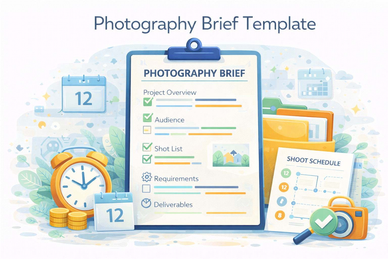 A strong photography brief template typically includes: